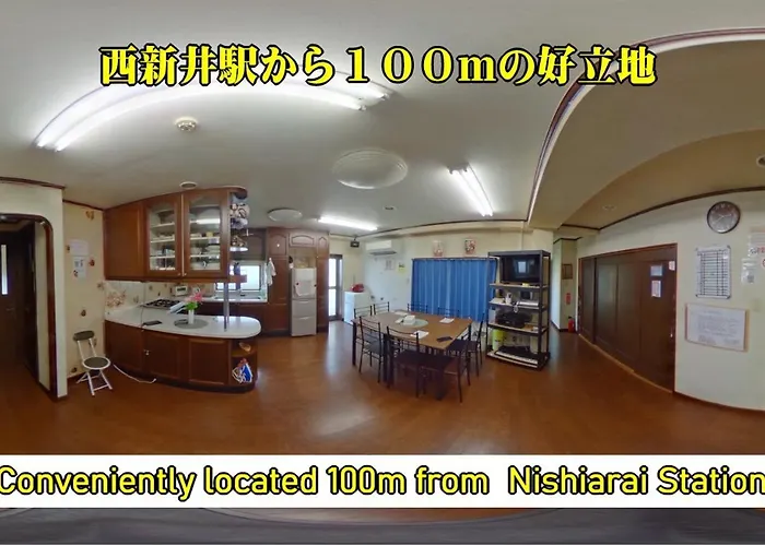 L'affittacamere è a 6 km dalla Ōji-jjinja Shrine, mentre il Parco Toneri si trova a 2 km dalla struttura. Le attrazioni religiose della zona includono il Santuario di Imado (7 km) e il Tempio di Kaneiji (8 km). Trovarsi a 15 minuti in auto dal Museo Nazionale di Tokyo è un vantaggio per gli ospiti del ゲストハウス栄. La fermata dell'autobus più vicina è Shimane-Sanchome, situata a 750 metri, e la stazione di treno di Nishiarai è a 350 metri.